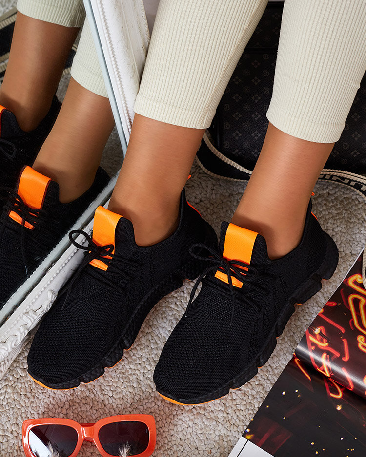 - Chaussures de sport pour femme sur semelle plate. Tige à lacets en tissu. Solide et très confortable grâce à la semelle en caoutchouc souple.