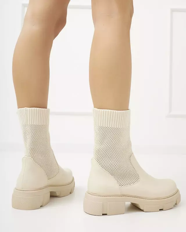 • Bottes pour femmes en cuir écologique finies avec une tige ajourée en tissu élastique. Le modèle a un insert en cuir écologique à l'intérieur. CHAUSSURES FEMME BEIGE BOTTES NON ISOLANTES ROIBU Remarque : le produit a du matériel cassé.