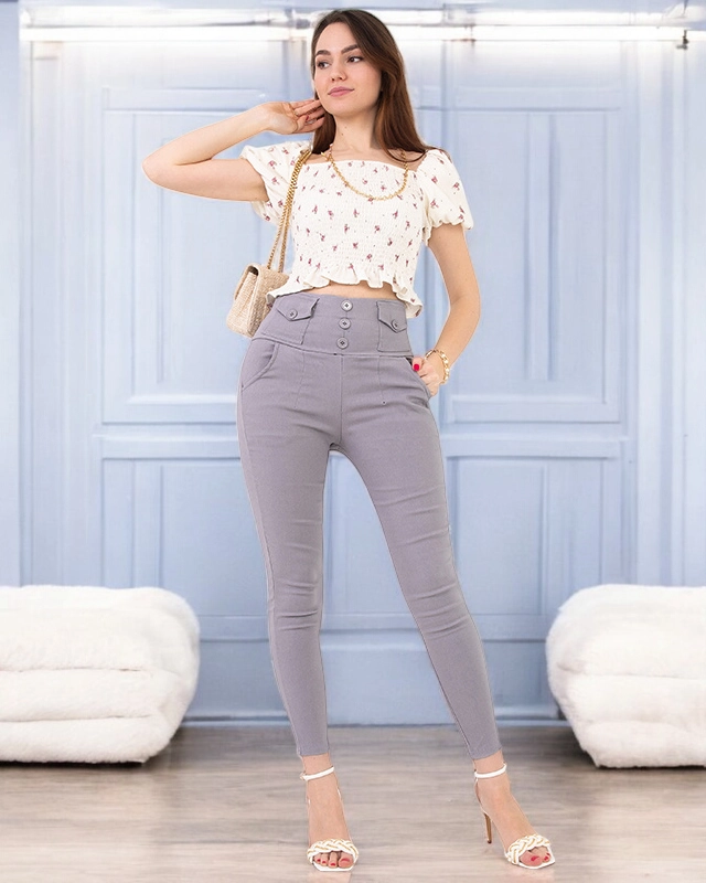 Tregging femme gris à boutons - Vêtements