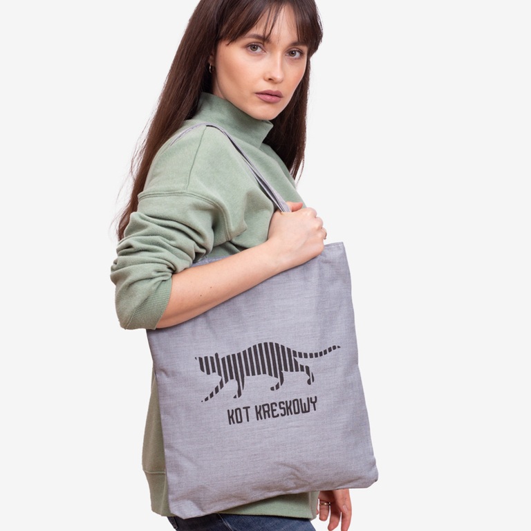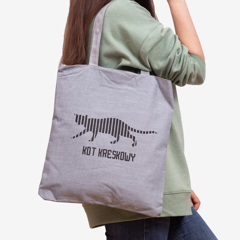 Sac en tissu gris avec inscription et imprimé chat - Accessoires