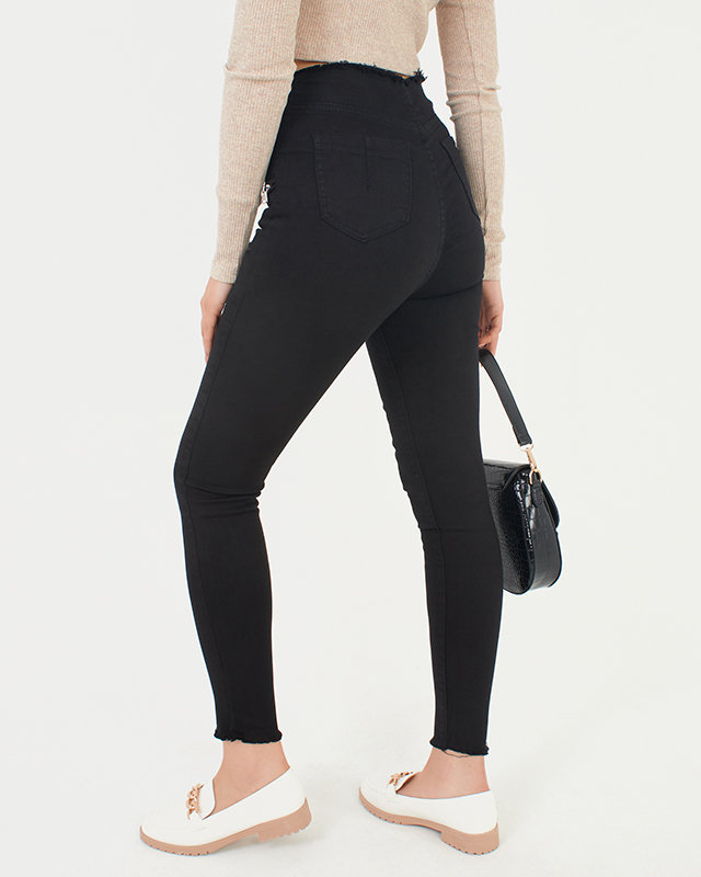 - Pantalons skinny noirs pour femmes en coton de haute qualité. Le pantalon a une bordure à l'avant, 4 poches plaquées et 2 poches décoratives. REMARQUE : Précision de mesure (+/-) 1 cm.