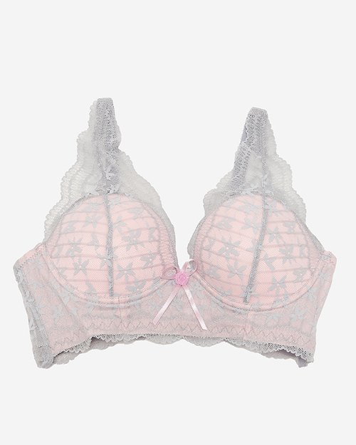 Soutien-gorge femme rose avec dentelle grise - Sous-vêtements