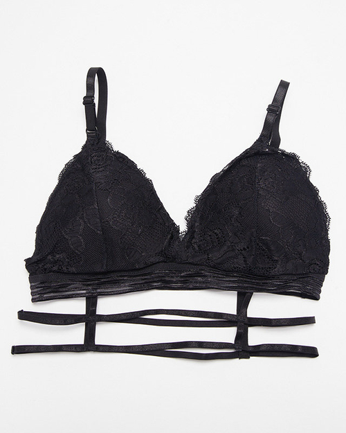 Soutien-gorge noir femme avec dentelle et rayures - Sous-vêtements