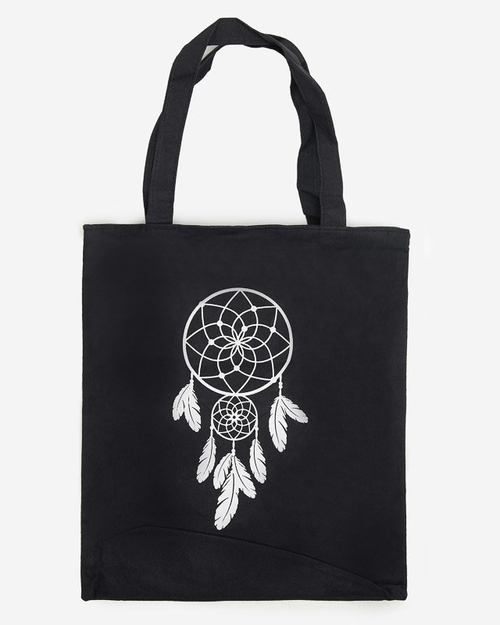 - Sac shopping à bandoulière en tissu doux avec imprimé attrape-rêves décoratif sur le devant. Fermé par un zip, à l'intérieur un grand compartiment et une petite poche zippée.