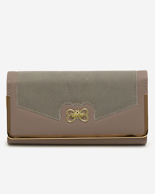 - Portefeuille pour femme en similicuir avec un papillon décoratif sur le devant. Le produit est fermé par un bouton. Le modèle comporte : - 3 compartiments dont 1 fermé par une fermeture éclair, - 8 poches pour cartes de paiement ou autres documents.