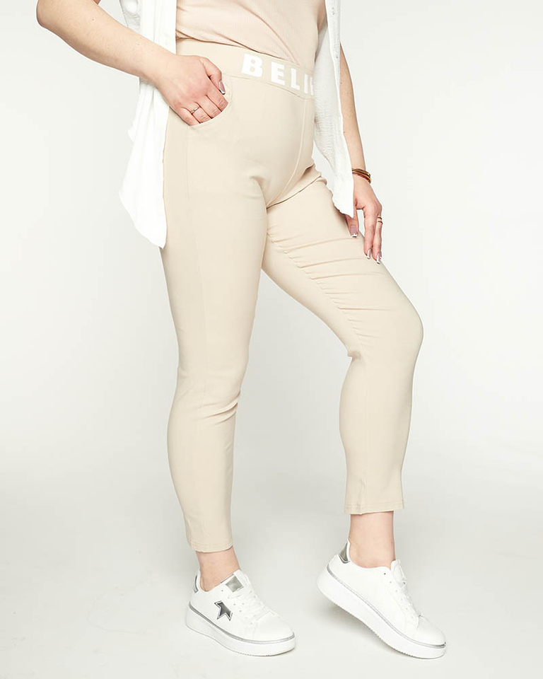- Pantalon en tissu pour femme à la mode avec taille élastique et poches avant. Modèle taille haute avec une inscription à la taille. La base parfaite pour de nombreux looks de tous les jours ! REMARQUE : Précision de mesure (+/-) 1 cm.