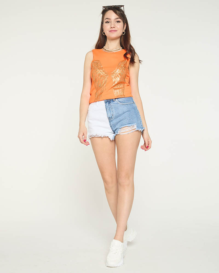 Top femme orange avec imprimé ailes dorées - Vêtements