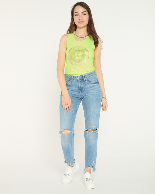 Chemisier jaune fluo sur bretelles avec imprimé et zircons cubiques - Vêtements