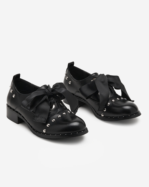 - Chaussures confortables à talons plats pour femmes, tige lacée avec un ruban, en cuir écologique avec strass décoratifs. Un complément élégant aux stylisations printanières ! Remarque : le produit présente des traces de colle sur le matériau.