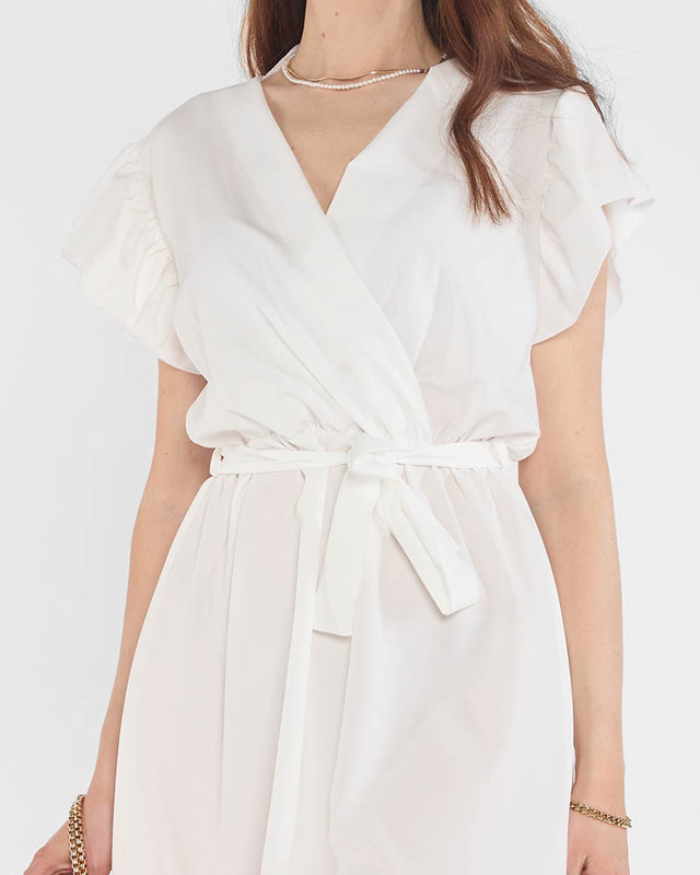 Mini robe blanche et écrue pour femme avec une cravate - Vêtements