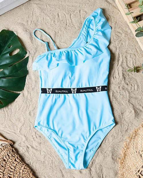 Maillot de bain 1 pièce femme bleu à volant - Sous-vêtements