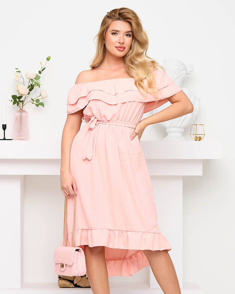 • Jolie robe d'été légère pour femme à volants et bas asymétrique. Produit épaules dénudées à l'espagnole, il possède une gomme et un galon à la taille. Une base parfaite pour de nombreuses tenues d'été ! REMARQUE : Précision de mesure (+/-) 1 cm.