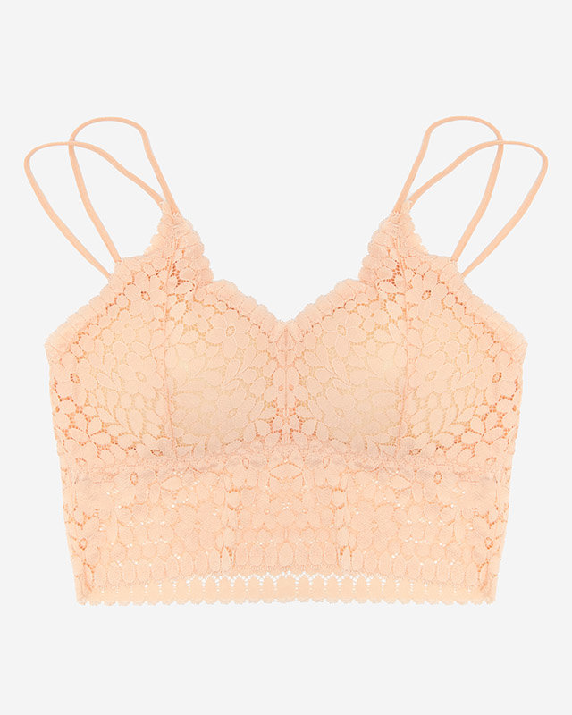 - Soutien-gorge bralette pour femme délicat, fini avec une dentelle attrayante et douce. Modèle sans attache, il possède des bonnets rembourrés et des bretelles décoratives. REMARQUE : Précision de mesure (+/-) 1 cm.