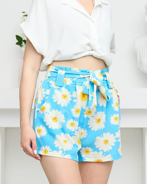 Short femme bleu tissu fleuri à motifs - Vêtement