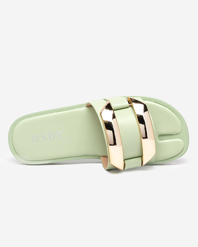Pantoufles vertes pour femmes avec un grand ornement doré Kedino - Footwear