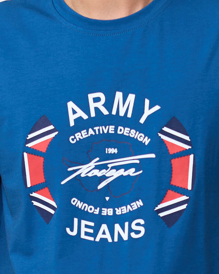 - T-shirt classique pour hommes à haute teneur en coton. Modèle à manches courtes et encolure ronde. La partie avant du T-shirt est ornée d'une impression. REMARQUE : Précision de mesure (+/-) 1 cm.