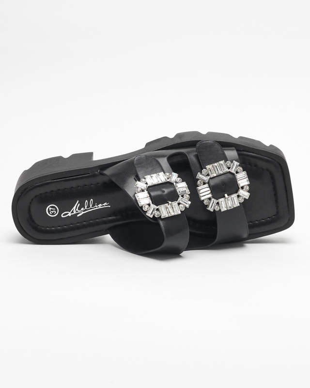 Babouches noires pour femme avec ornements en zircon Sadoh - Footwear