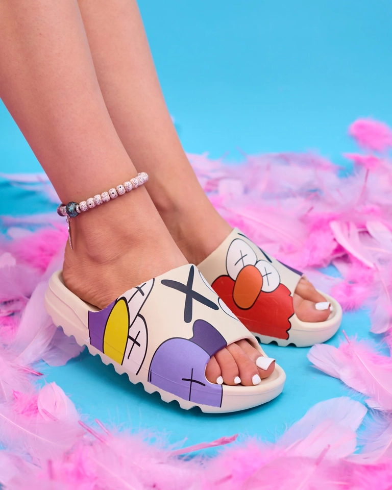 - Chaussons femme confortables sur semelle basse, entièrement en caoutchouc. Modèle avec un thème de conte de fées !