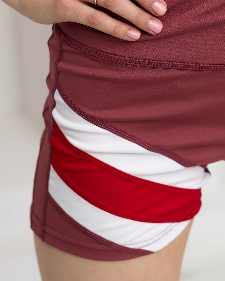 • Short très confortable et élastique, type shorty, orné d'un empiècement blanc et rouge. Le modèle a une large taille élastique. Parfait pour passer du temps activement ! REMARQUE : précision de mesure (+/-) 1 cm.