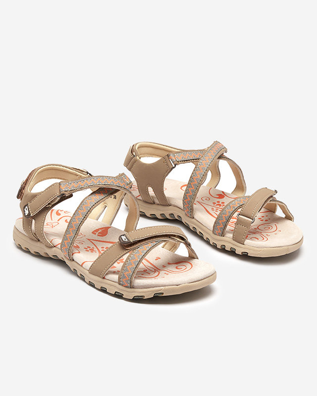 - Superbes sandales pour femmes, faites d'une combinaison de cuir et de tissu écologiques. Le modèle est fixé avec du velcro. La semelle intérieure en cuir assurera le confort de port. Parfait pour un voyage de vacances!