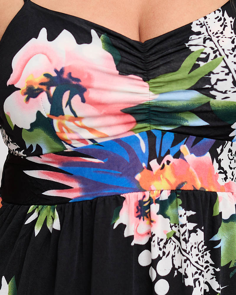 - Robe de longueur genou à motif fleuri. Modèle à la coupe ample, doté d'une découpe à la taille avec un élastique et des bretelles réglables. Robe d'été parfaite ! REMARQUE : Précision de mesure (+/-) 1 cm.