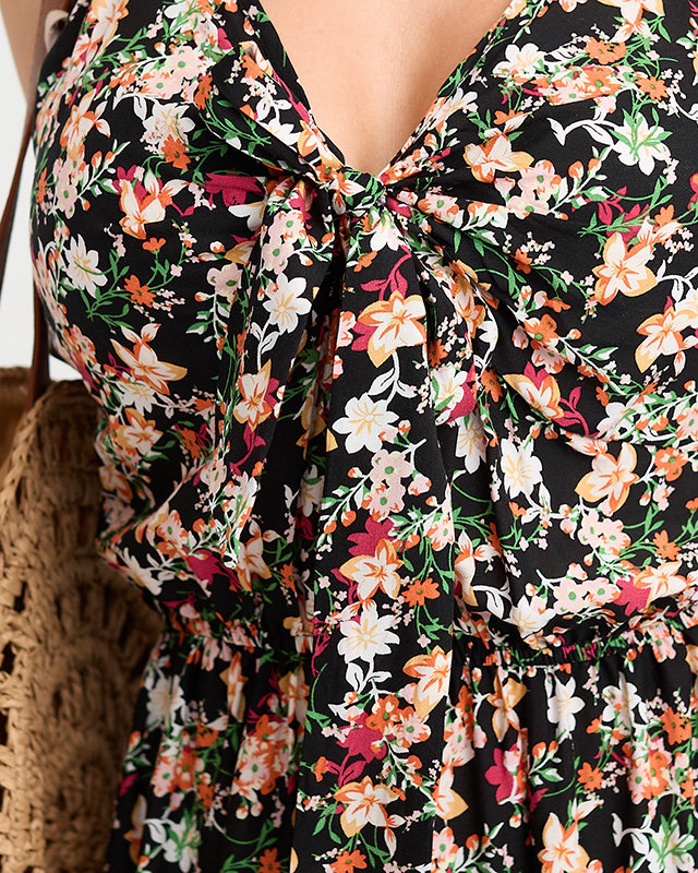 - Robe longue à fleurs pour femme en matière légère et aérée. Le modèle présente un décolleté en cœur, des bretelles réglables et un nœud décoratif sur le devant. Idéale pour la chaleur de l'été ! NOTE : Précision des mesures (+/-) 1 cm.