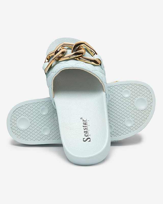 Chaussons matelassés femme bleus avec chaîne dorée Eteris - Footwear