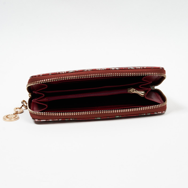 Grand portefeuille femme bordeaux à motif fleuri - Accessoires