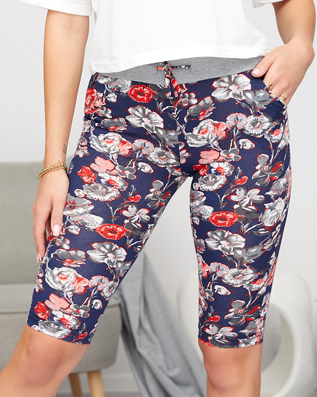 - Short femme confortable avec poches, en tissu de coton à fleurs. Le modèle de longueur 3/4 a un élastique et des rouleaux noués à la taille. REMARQUE : Précision de mesure (+/-) 1 cm.