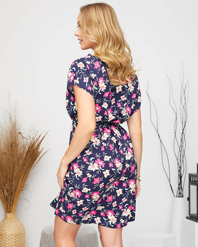 Robe été femme bleu marine à fleurs - Vêtements