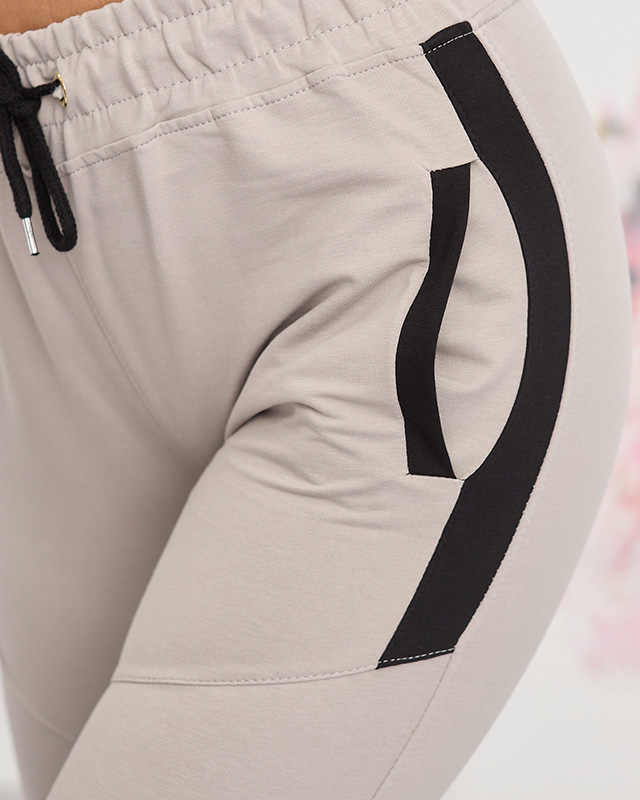 - Pantalon de survêtement pour femme en tissu de coton doux. Le modèle a une bande élastique et des cordons de serrage noués à la taille. Pantalon avec 2 poches plaquées, empiècements décoratifs et jambes élastiquées. REMARQUE : Précision de mesure (+/-) 1