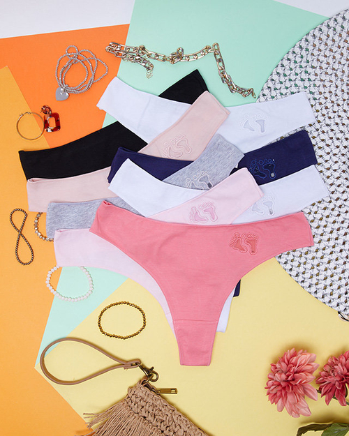 Strings coton brodés femme 8/paquet - Sous-vêtements