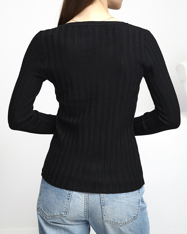 Pull côtelé noir pour femme - Vêtements