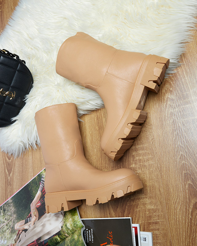 - Bottines à talon plat intemporelles pour femme en cuir écologique. La chaussure est à enfiler, l'intérieur est isolé avec une fourrure délicate. Un excellent ajout à vos tenues décontractées! CHAUSSURES CHAUDES CAMEL BOTTES MEKIRA