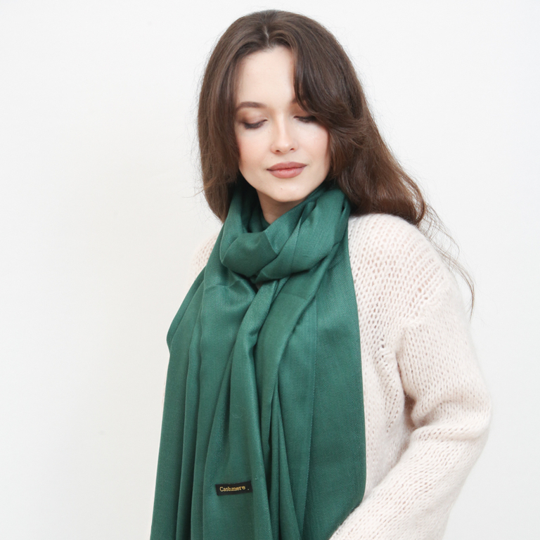 Echarpe large pour femme vert foncé avec pompons - Accessoires