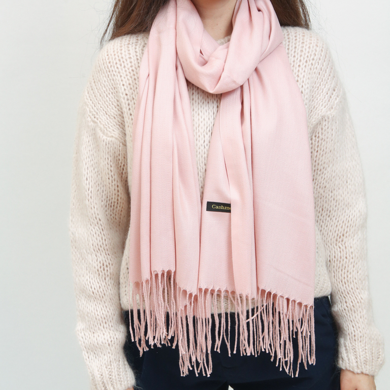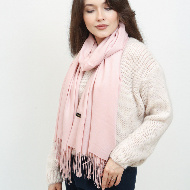 Grande écharpe rose pour femme avec pompons - Accessoires