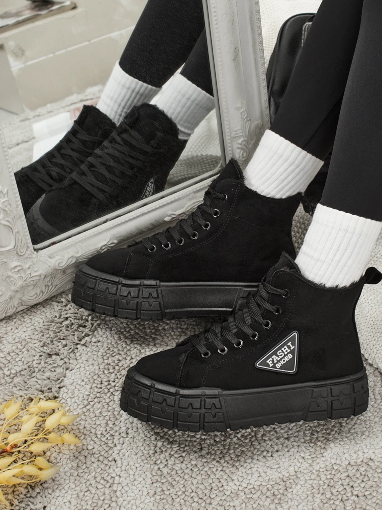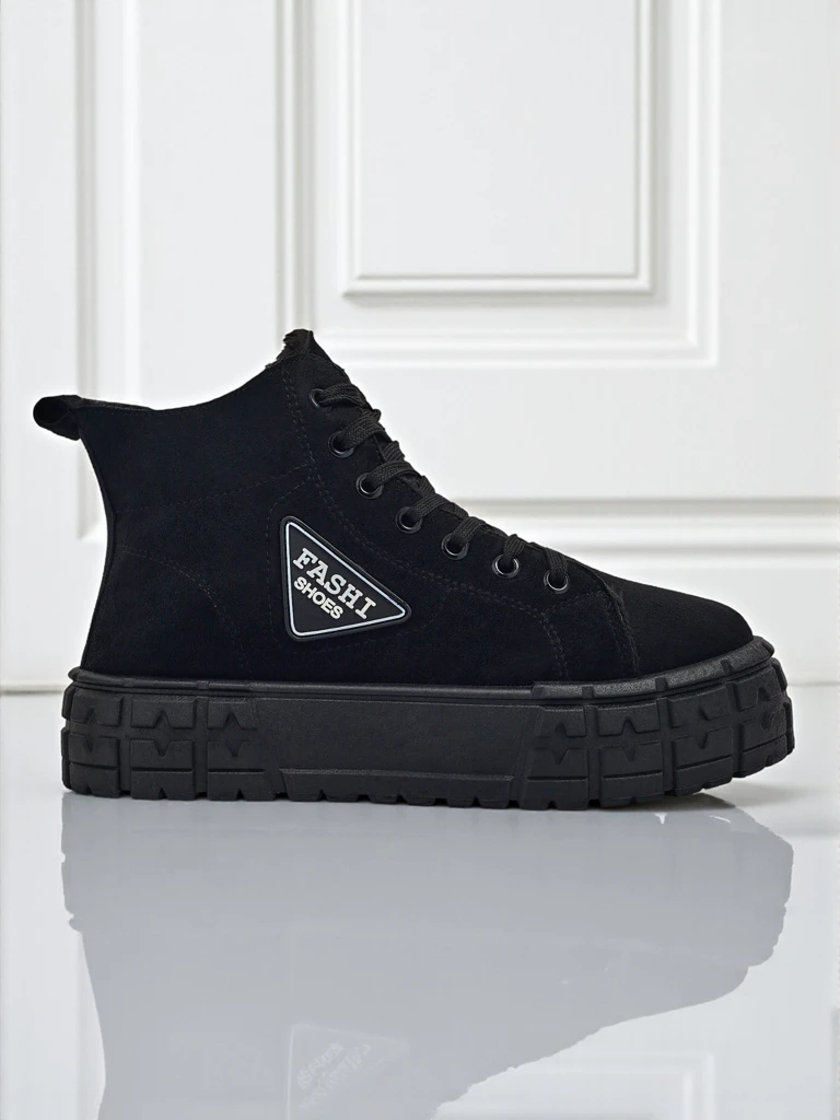 Chaussures pour femmes de couleur noire, en cuir écologique de haute qualité, offrant confort et look tendance. Grâce à l'utilisation d'une semelle intérieure en laine, les pieds restent chauds même par temps froid. La hauteur de la semelle est de 4 cm, ce qui ajoute des centimètres subtils sans sacrifier le confort. La tige d'une hauteur de 10,5 cm et d'une largeur de 12 cm (pour la taille 38) permet aux chaussures de s'adapter parfaitement à tous les pieds. Ces chaussures à plateforme allient style et fonctionnalité, ce qui en fait un choix idéal pour tous les jours, pour une promenade ou une sortie entre amis. Grâce à sa couleur neutre, elles s'adaptent à différents styles. En combinaison avec un jean mom, un pull oversize et un manteau, vous créerez un style décontracté parfait. De plus, vous pouvez les associer à des leggings et une longue tunique ou une robe de coupe simple pour un look élégant mais décontracté. Pour profiter des chaussures le plus longtemps possible, il est recommandé de les nettoyer régulièrement avec une brosse douce et des produits d'entretien spécialisés pour les matériaux en daim. Il est également conseillé de les conserver dans un endroit sec, à l'abri de l'humidité. Les tendances de la mode actuelles mettent en avant la combinaison d'éléments classiques avec un style moderne, ce qui correspond parfaitement au caractère de ces chaussures. Misez sur le confort et l'élégance grâce à ces accents tendance !