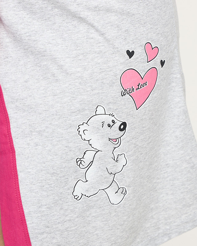 Peignoir femme gris avec empiècements roses - Vêtements