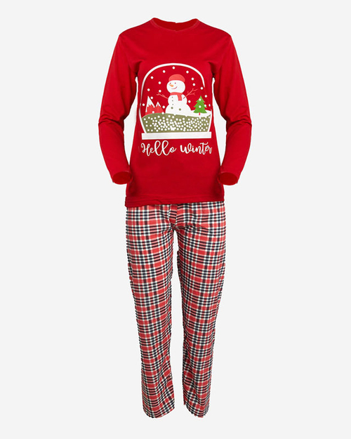 Pyjama 2 pièces rouge pour femmes avec bonhomme de neige- Vêtements