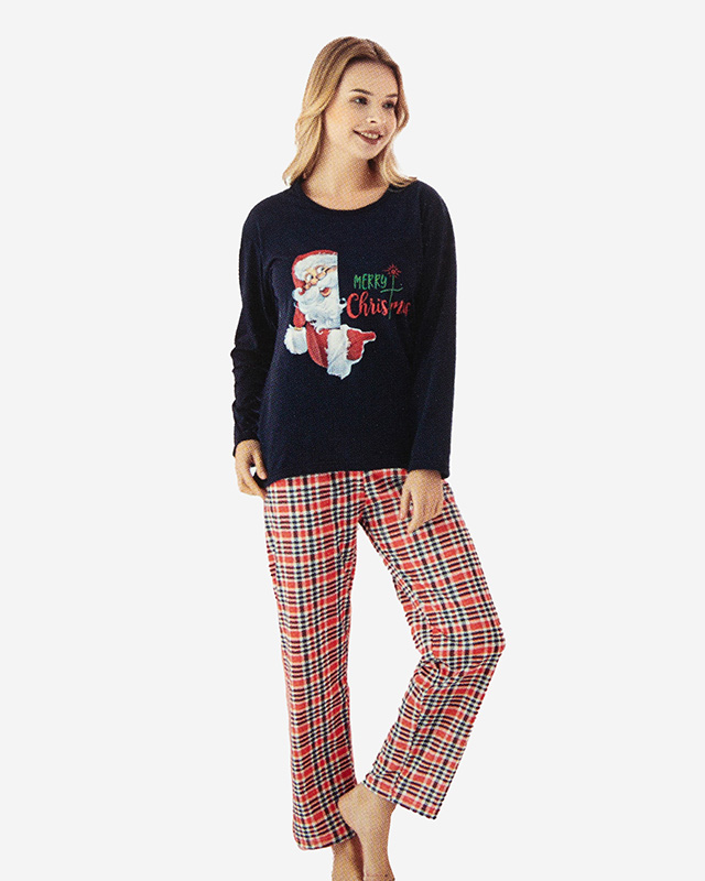 Pyjama 2 pièces bleu marine pour femmes avec impression de Noël - Vêtements