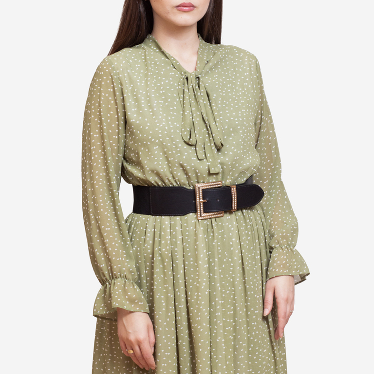 Ceinture large noire pour femmes avec grande boucle dorée avec zircons - Accessoires