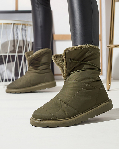 - Bottes de neige élégantes pour femmes. L'empeigne est faite de matériel artificiel a'la toile cirée. Le milieu est isolé avec de la fourrure épaisse. La chaussure est lacée. BOTTES D'HIVER VERT FONCÉ BOTTES DE NEIGE POUR FEMMES AMIRFU