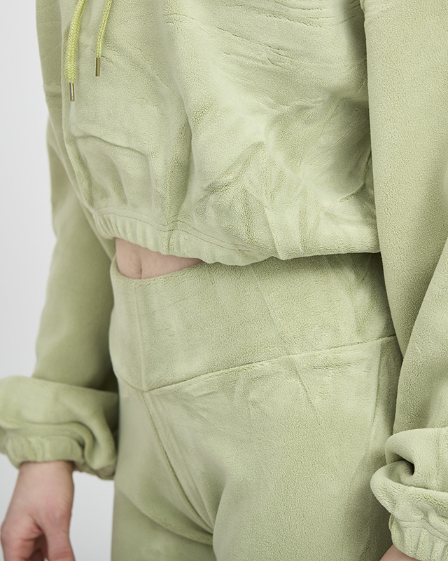 - Ensemble de sport pour femme : sweat-shirt et pantalon, en matière polaire a'la. Pantalon de type legging avec élastique à la taille et au bas des jambes, sweat-shirt court avec capuche et pantalon et élastique extensible au bas. REMARQUE : Précision des