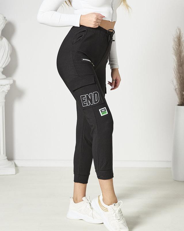 - Sensationnel pantalon de combat en tissu pour femme, fabriqué en matière stretch. Le modèle est doté d'une bande élastique et de liens à la taille et de 4 poches à glissière. En outre, une inscription décorative sur le côté. Parfait pour les baskets ! Pré
