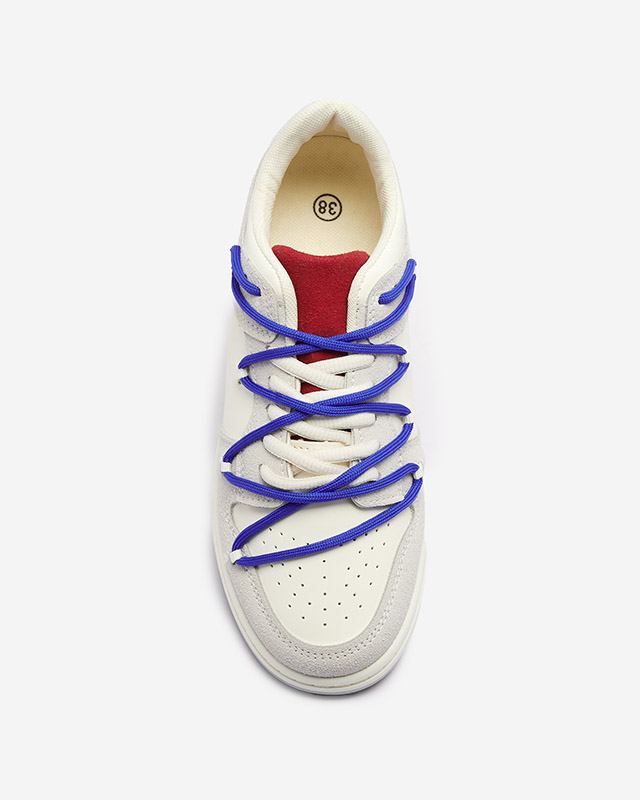 Baskets de sport pour femmes blanc-gris avec lacets bleu marine Olierinc - Chaussures