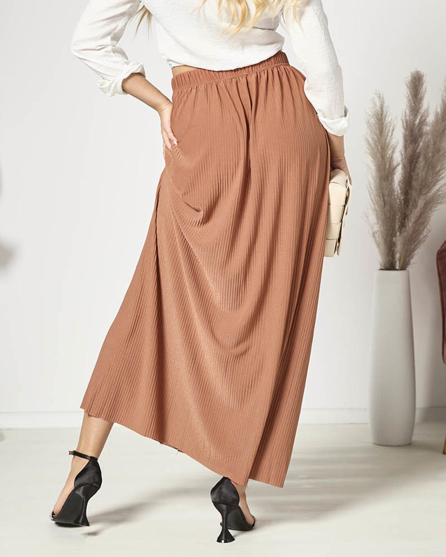 Jupe maxi plissée marron pour femme avec boutons - Vêtements