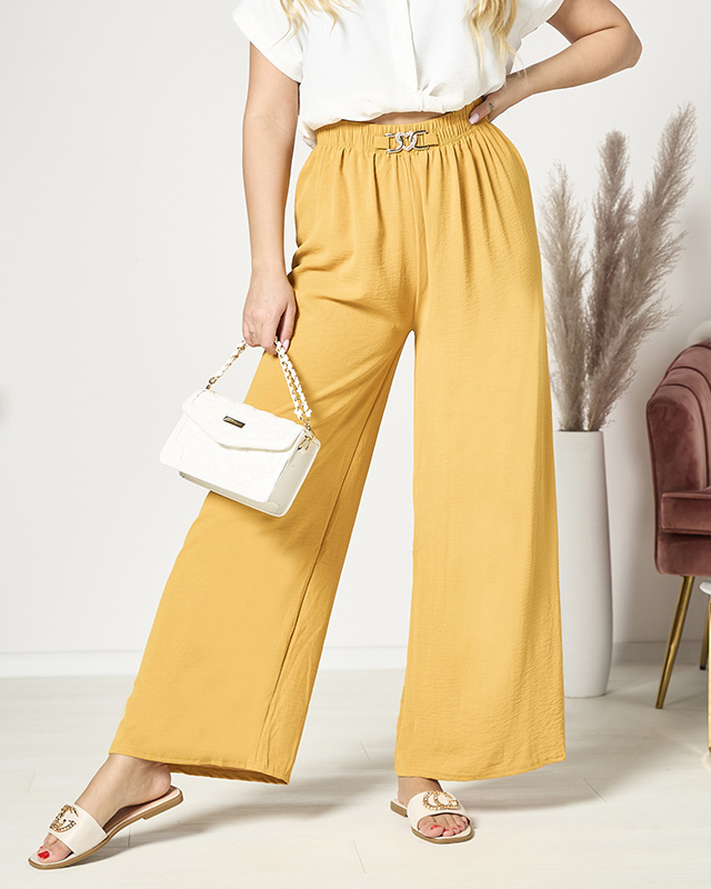 Pantalon palazzo large pour femme de couleur moutarde - Vêtements