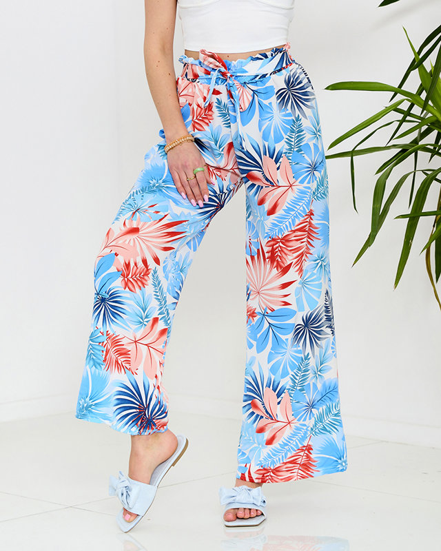 Pantalon palazzo bleu pour femme à motif floral - Vêtements