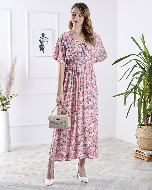 Robe midi rose pour femme avec motif floral- Vêtements