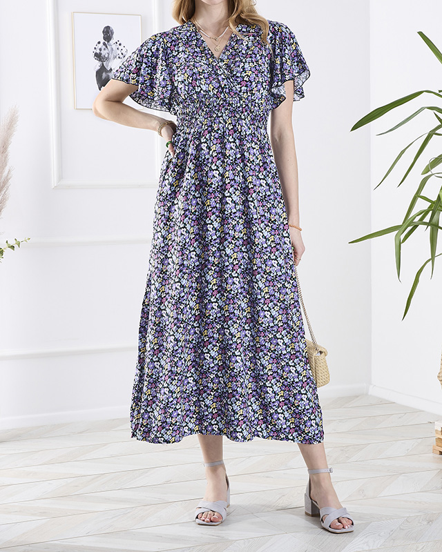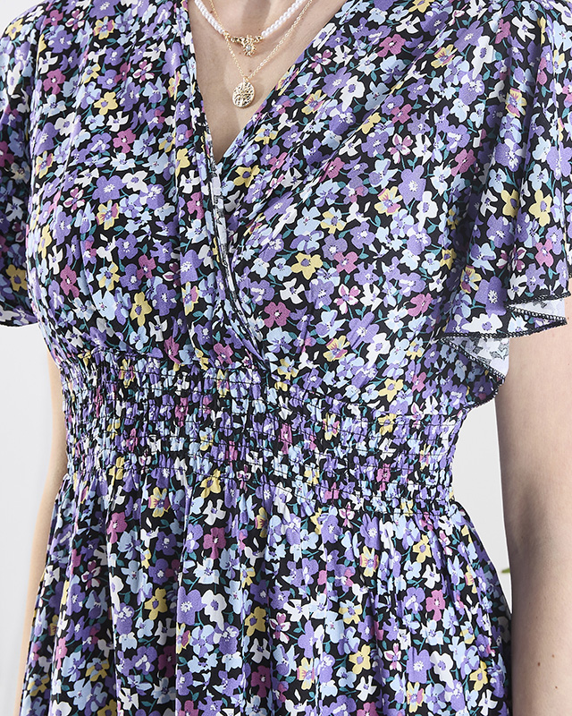 Robe longue noire à fleurs violettes pour femme - Vêtements